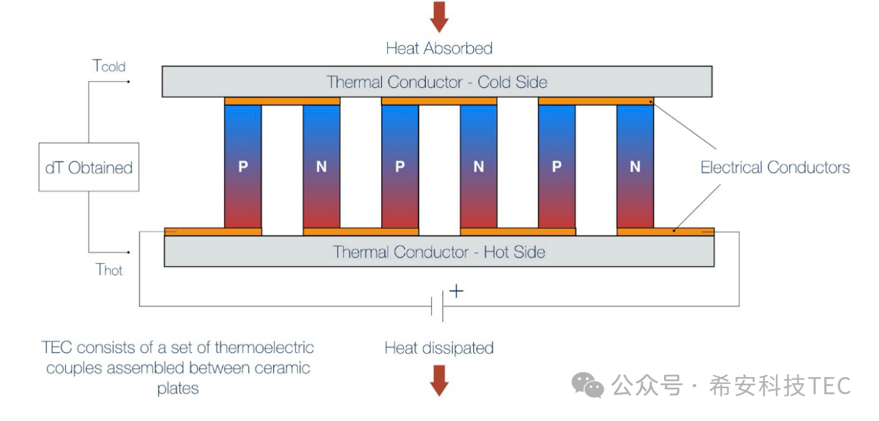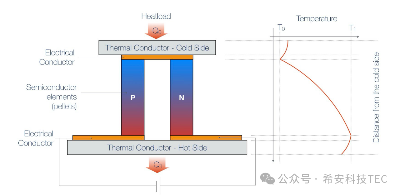 PN junturak, geruza eroalearen bidez, termopare bat osatzen du eta TECren oinarrizko egitura-osagaia da. Termopare bakar batek ere hozteko edo berotzeko funtzioak lor ditzake piztu ondoren.